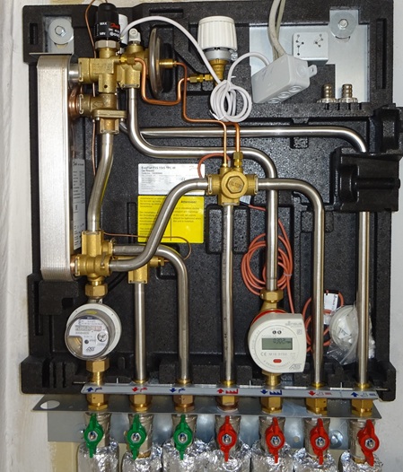Erneuerung der 24 alten Wohnungsstationen, Nachberechnung Heizungs- und Trinkwassernetz, Mängelermittlung Bestandsinstallation, Abgleich und Einregulierung, im bewohnten Zustand